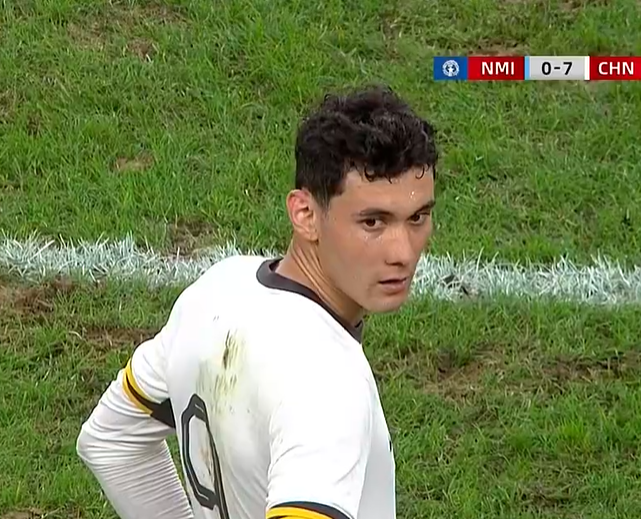 比赛开始后,中国队刚开场就打进一球,不过拜合拉木进球被判越位。北马里亚纳群岛防守很积极,中国队进攻有些急躁,前30分钟一球未进。中国队进攻射门次数很多,但是效率很低,直到上半场补时阶段第4分钟,中国队才打进第一球,蒯继闻突破后射门被扑出,拜合拉木补射破门,上半场,中国队1比0领先,这样的比分显然无法让人满意。